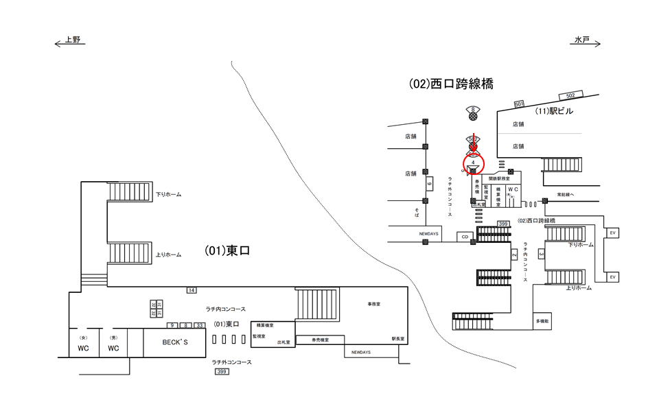 駅看板「JR 取手駅 西口跨線橋№4」は西口改札の外通路に設置された電飾タイプの広告看板です。西口出口周辺を行き来される方の動線上にあり、近隣店舗施設への誘導案内広告や周知広告に適したロケーションです。