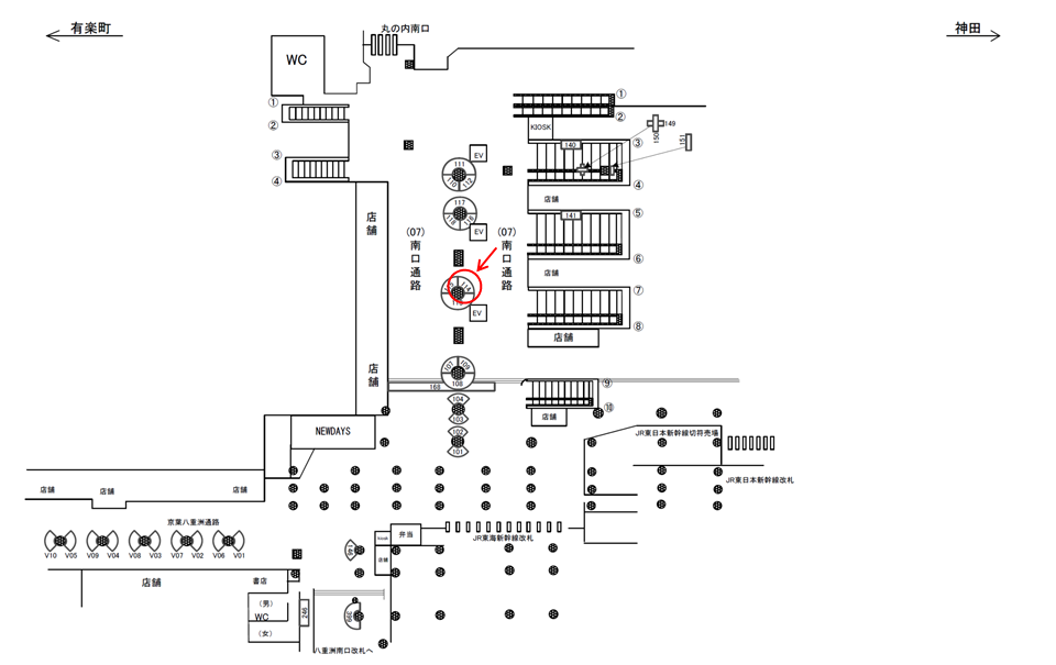 ○南口通路№117 改札内コンコース(南通路 丸の内南口改札寄り) |