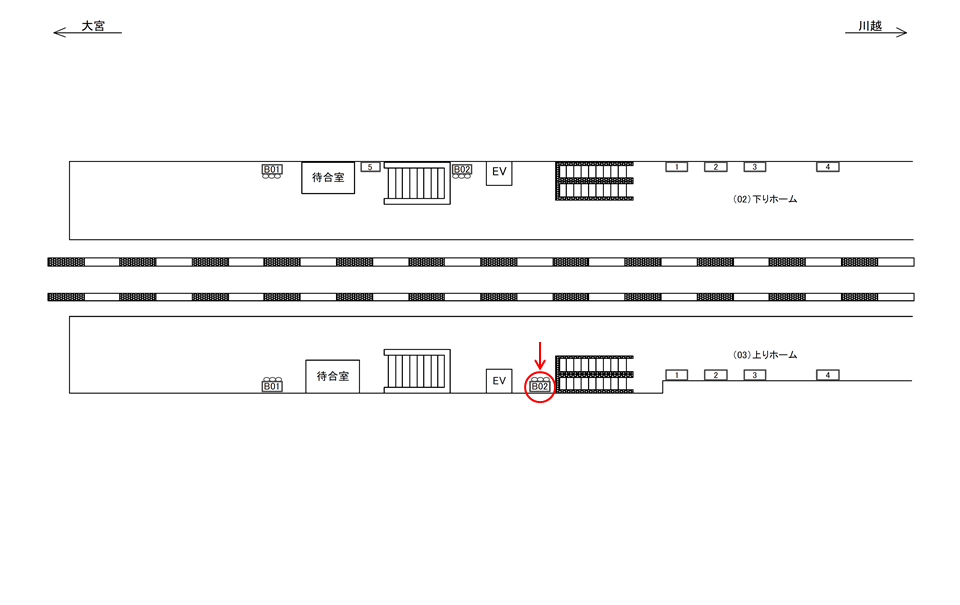 駅看板「JR 西大宮駅 上りホーム№B02」の広告ロケーション