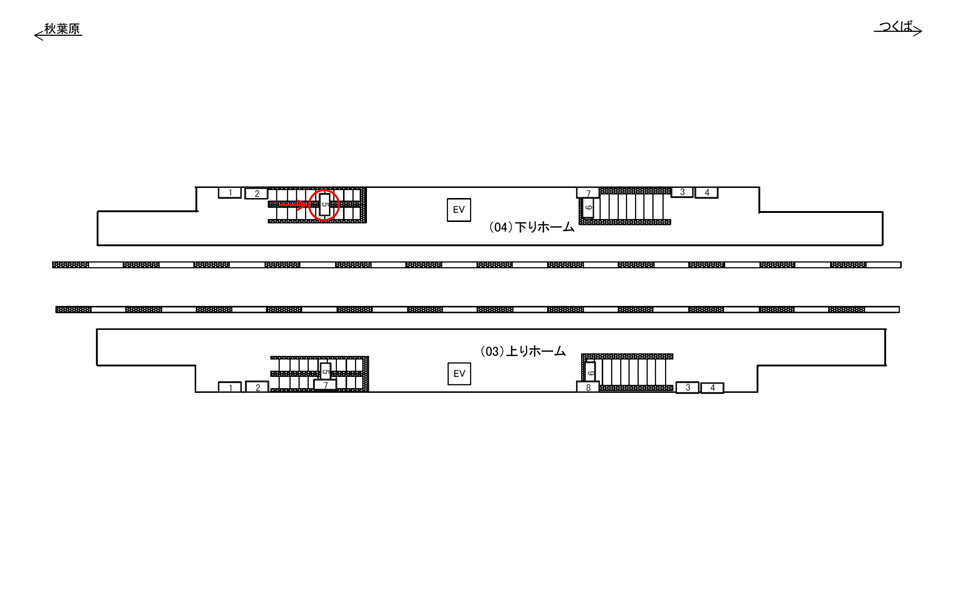 下り(つくば方面)ホームの階段正面に設置された広告看板です。ホームから改札へ向かう際の階段正面に設置された電飾タイプの広告看板です。