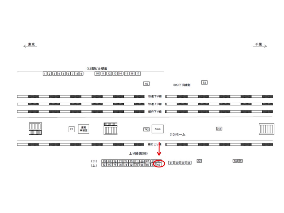 JR総武線 各駅停車 亀戸駅の上りホーム(錦糸町・新宿・三鷹方面行き)線路前に設置されている看板です。列車ホームで電車を待つ方に向けて毎日訴求可能です。