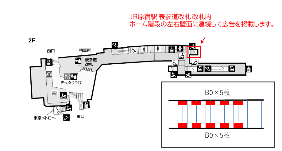 ○原宿改札内腰壁シートプラス 7日間 改札内コンコース(表参道改札側 駅構内通路) |