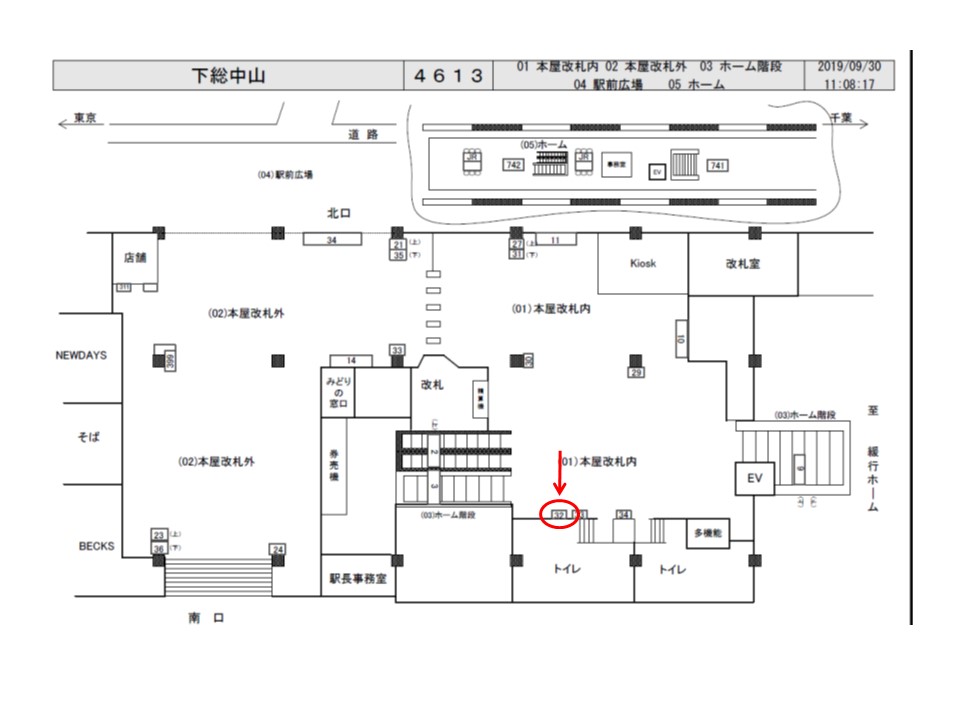 JR総武線 下総中山駅の改札内の看板です。改札から列車ホーム階へ上がるエスカレーターに乗る際と階段を上がる際にに見えます。