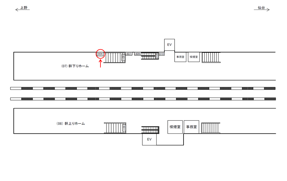 JR 宇都宮駅の新幹線ホームの駅看板です。下り方面ホームの階段そばです。
