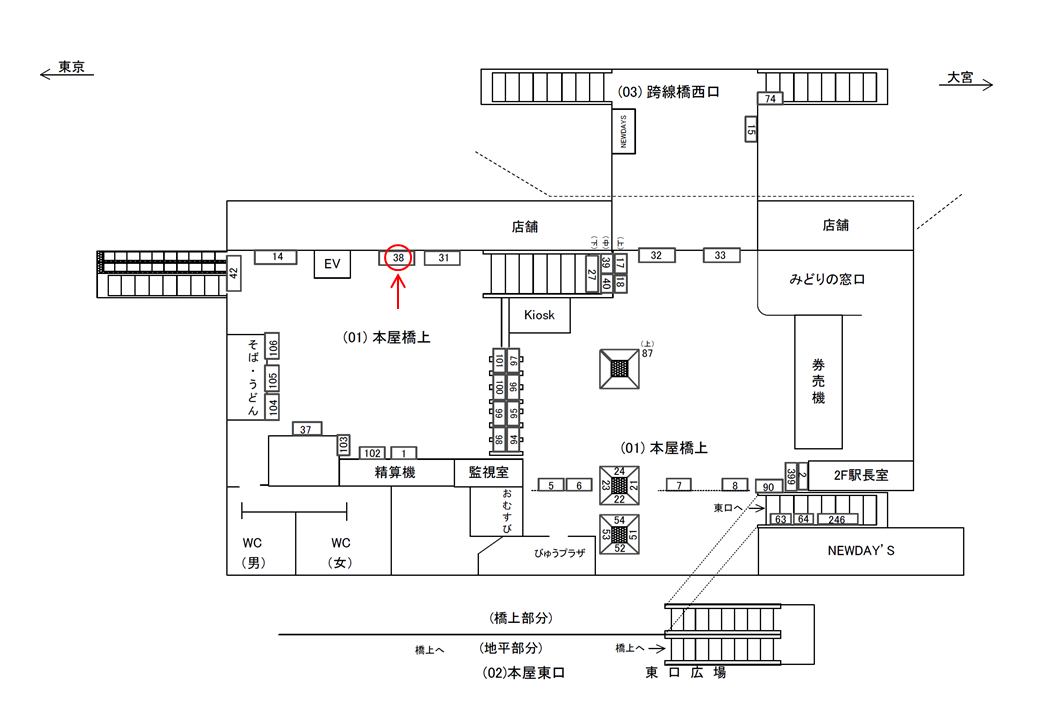 改札は橋上の駅舎に1箇所、ホームは下層地上階に京浜東北線ホーム1面(島ホーム)がございます。