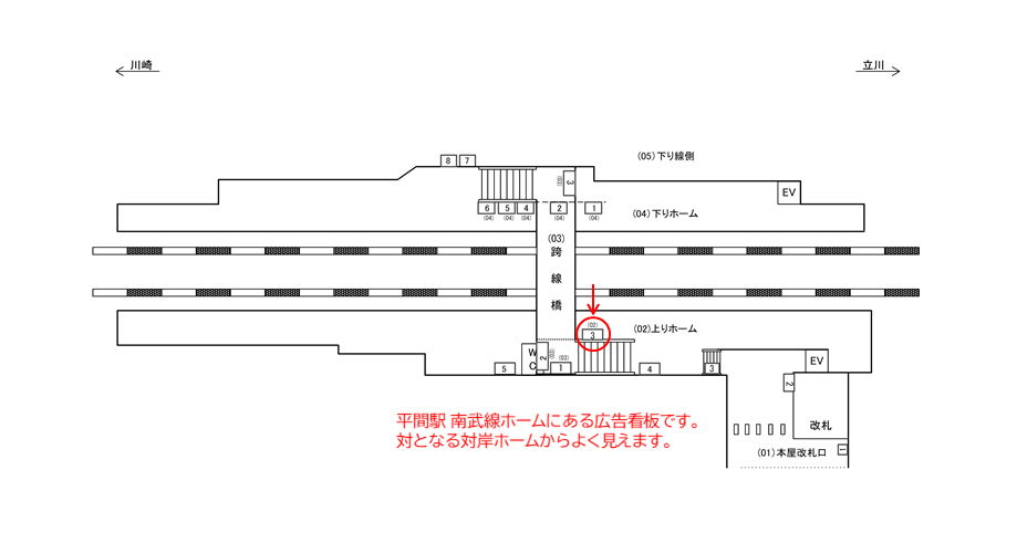 南武線ホームにある広告看板です。対となる対岸ホームからよく見えます。