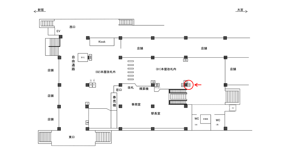 改札内コンコース、ホームに繋がっているエスカレーター・階段の近くに設置されています。駅構内を往来される方にご覧頂ける場所にございます。