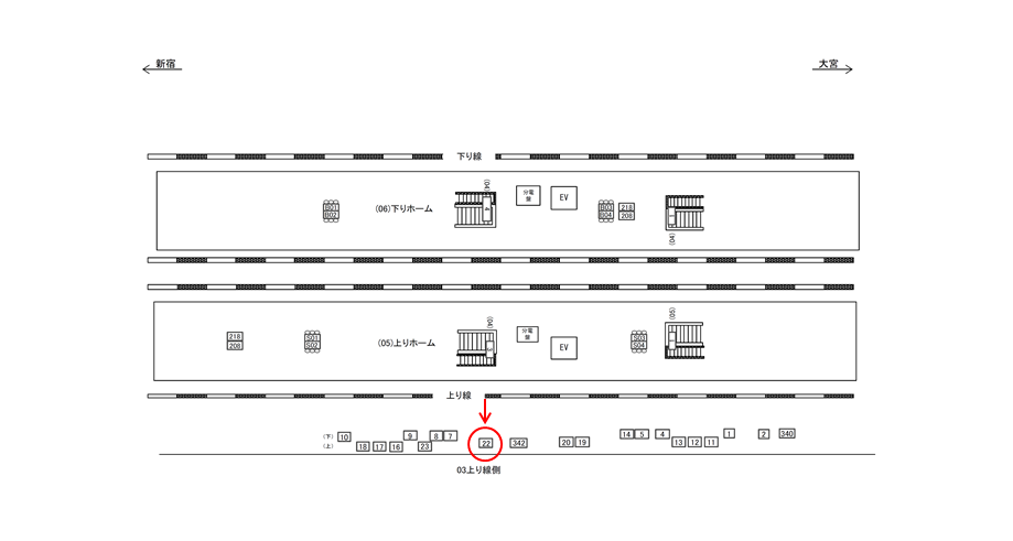 ○上り線側№17 線路前(JR埼京線 池袋・新宿・大崎・りんかい線方面) |
