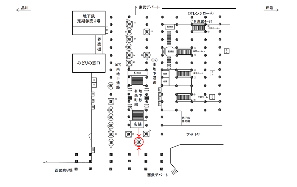 ○中央通路№67 改札外コンコース(中央通路 西武東口方面 柱) |