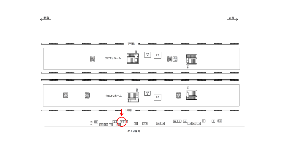○上り線側№22 線路前(JR埼京線 池袋・新宿・大崎・りんかい線 新木場方面) |