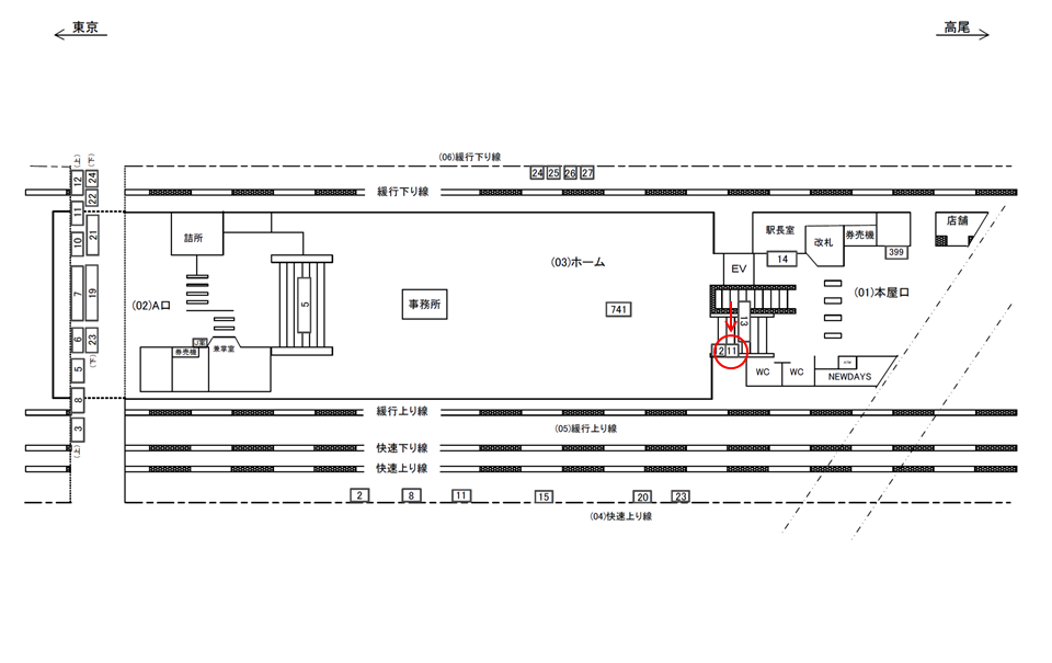 JR大久保駅、コンコースの駅広告(駅看板)設備のご紹介です。ホームと北口改札を繋ぐ階段横(壁面)に設置されている広告看板です。