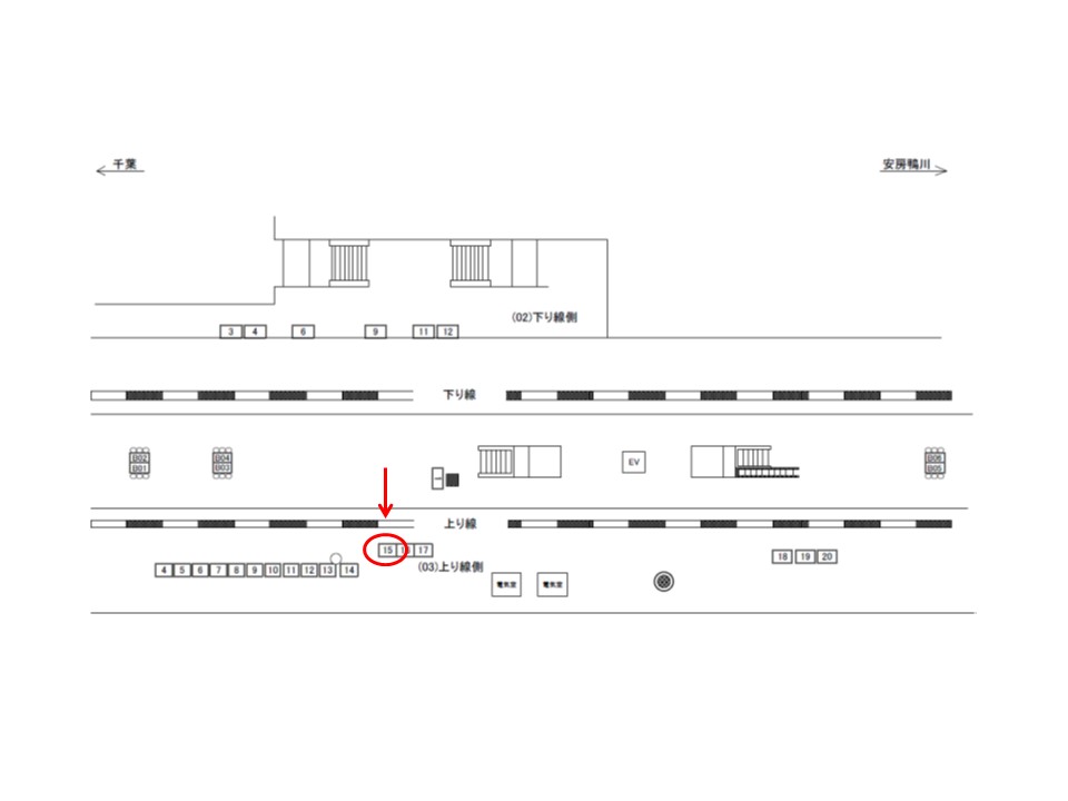 JR外房線 土気(とけ)駅の上りホーム(蘇我・千葉・船橋・舞浜・東京方面)の線路前に設置されている看板です。上りホームで電車を待つ際に見えます。こちらの№15はホーム階段近くにあり、多くの人の目にとまる位置にございます。