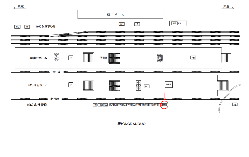 改札は中央改札と南改札の2箇所です。ホームは下層階に京浜東北線の上りホームと下りホームの島ホームが1面ずつ、計2面あります。