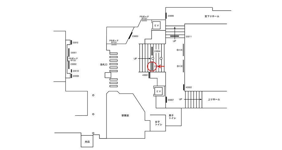 構内にある駅看板は「これから電車に乗る方」もしくは「駅を出る方」に見てもらえます。いずれにしても汐入駅を利用するタイミングで広告に接触してもらえます。移動中に見てもらえる駅構内の駅看板は、汐入駅の周辺にある店舗施設の紹介や道案内に利用されています。特に駅の出口付近にある駅看板は、店舗までの距離が近く案内看板に適しています。