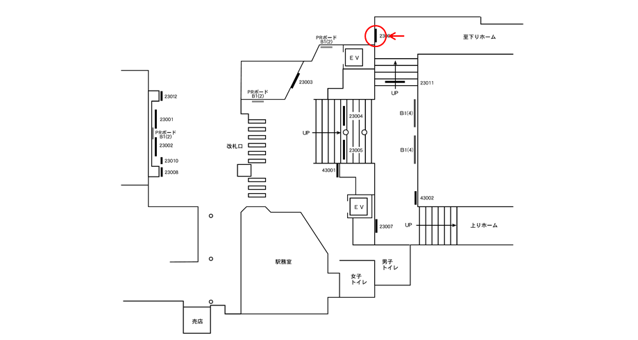 構内にある駅看板は「これから電車に乗る方」もしくは「駅を出る方」に見てもらえます。いずれにしても汐入駅を利用するタイミングで広告に接触してもらえます。移動中に見てもらえる駅構内の駅看板は、汐入駅の周辺にある店舗施設の紹介や道案内に利用されています。特に駅の出口付近にある駅看板は、店舗までの距離が近く案内看板に適しています。
