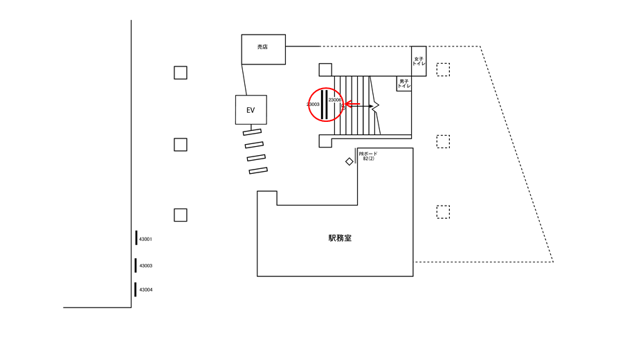 駅看板№23006はホームから改札へ向かう際の階段にあります。これから「駅を出る方」に見てもらえます。京急長沢駅を下車するタイミングで広告に接触してもらえます。移動中に見てもらえる駅構内の駅看板は、京急長沢駅の周辺にある店舗施設の紹介や道案内に利用されています。特に駅の出口付近にある駅看板は、店舗までの距離が近く案内看板に適しています。
