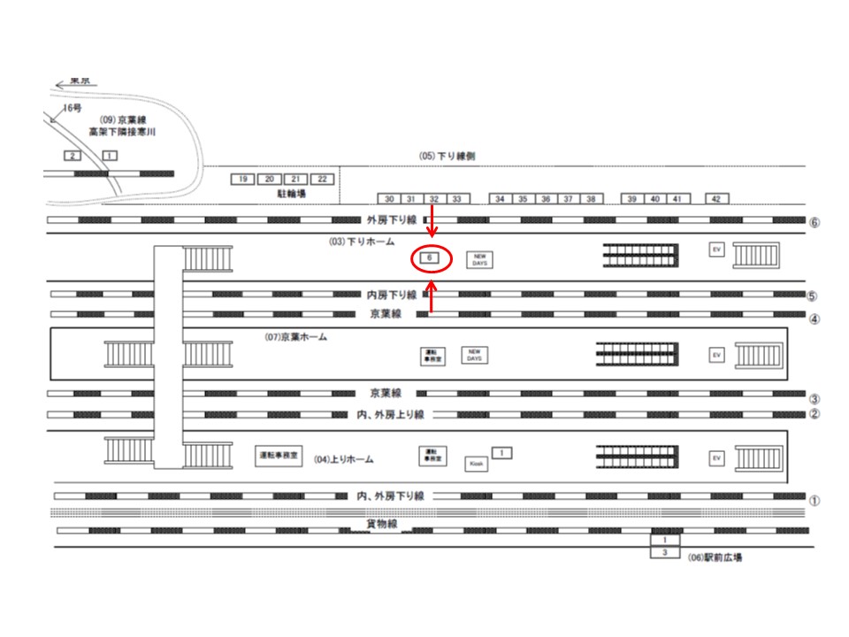 JR蘇我駅の内房線・外房線下りの線路前の看板です。ホームで電車を待つ際や、停車中の車内から見えます。またこちらの看板は両面タイプになっており、3・4番線の京葉線ホームからも視認可能です。