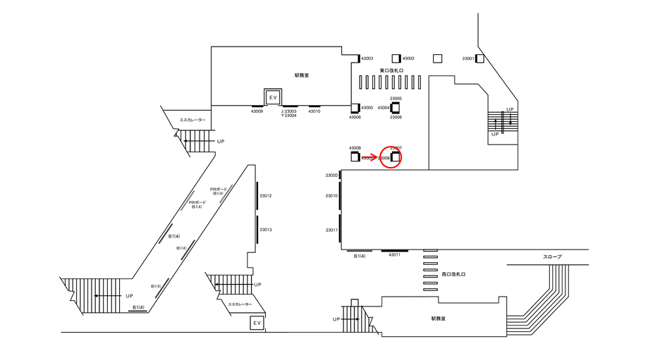 構内にある駅看板は「これから電車に乗る方」もしくは「駅を出る方」に見てもらえます。いずれにしても駅を利用するタイミングで広告に接触します。移動中に見てもらえる駅構内の駅看板は、横須賀中央駅の周辺にある店舗施設の紹介や道案内に利用されています。特に駅の出口付近にある駅看板は、店舗までの距離が近く案内看板に適しています。