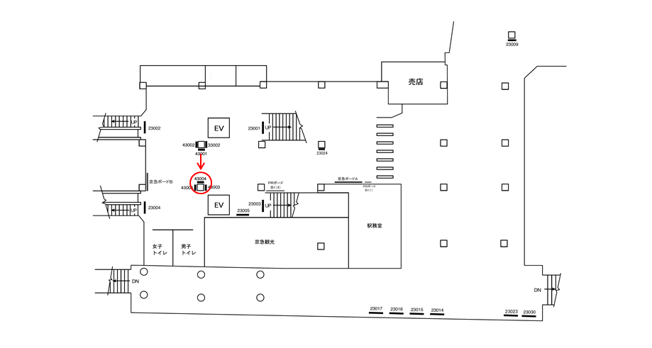 構内にある駅看板は「これから電車に乗る方」もしくは「駅を出る方」に見てもらえます。いずれにしても駅を利用するタイミングで広告に接触します。移動中に見てもらえる駅構内の駅看板は、京急久里浜駅の周辺にある店舗施設の紹介や道案内に利用されています。特に駅の出口付近にある駅看板は、店舗までの距離が近く案内看板に適しています。
