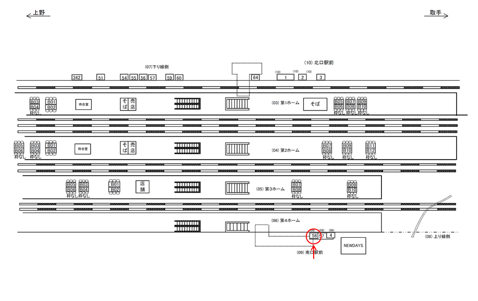 「JR 我孫子駅 南口駅前№56」は、南口出口の階段横に設置された広告看板です。