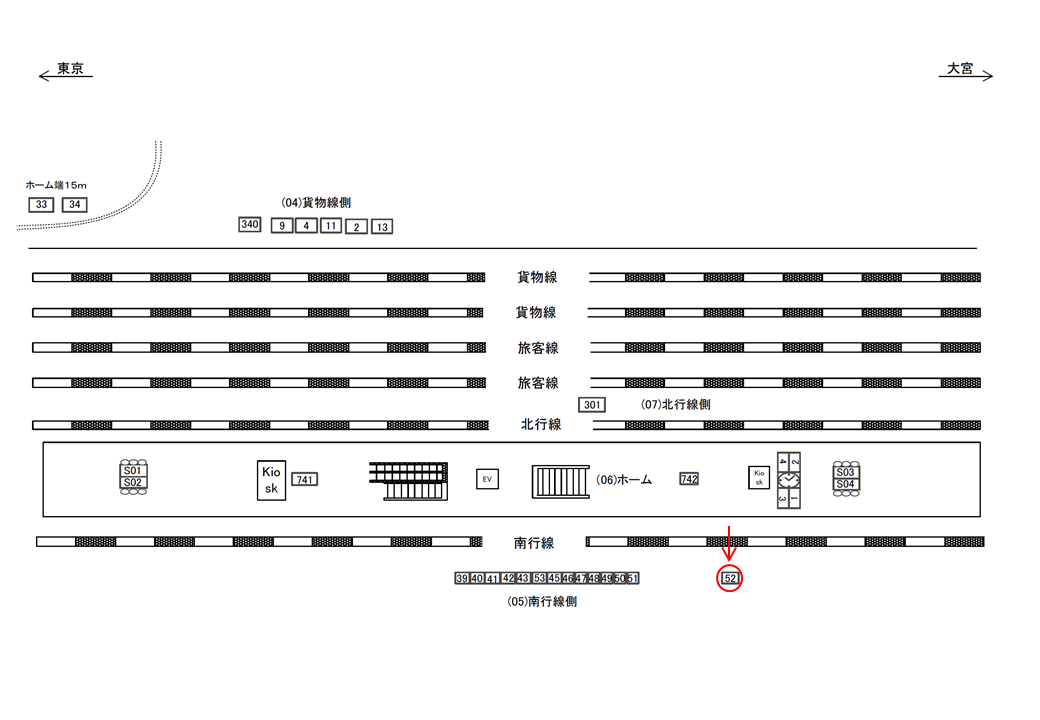 この線路に停車する電車は南浦和行と大宮行です。JR川口駅から蕨・浦和・大宮方面へ移動される方がここから乗車します。