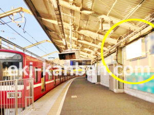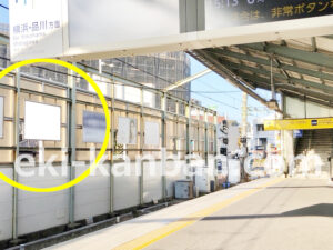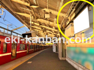 駅看板「京急 逗子・葉山駅 №43007」はホームの中でも南口改札側にあります。