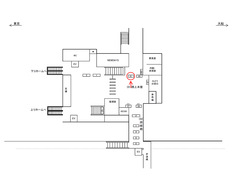 改札は地上駅舎に1箇所、ホームは京浜東北線と横浜線が停車する島ホームが2面あります。