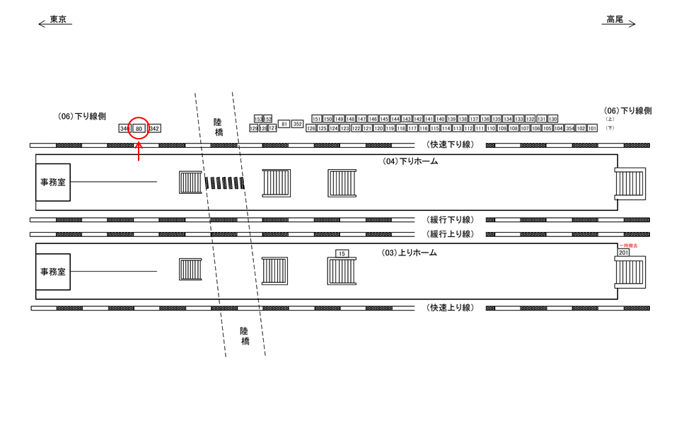 ○下り線側№116 線路前(JR中央線快速 新宿・立川・八王子・高尾方面) |