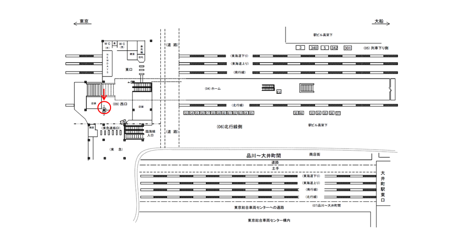 大井町駅西口・東口改札口を利用される方や、りんかい線と東急大井町線へのお乗りへされる方へのご案内にご利用ください。
