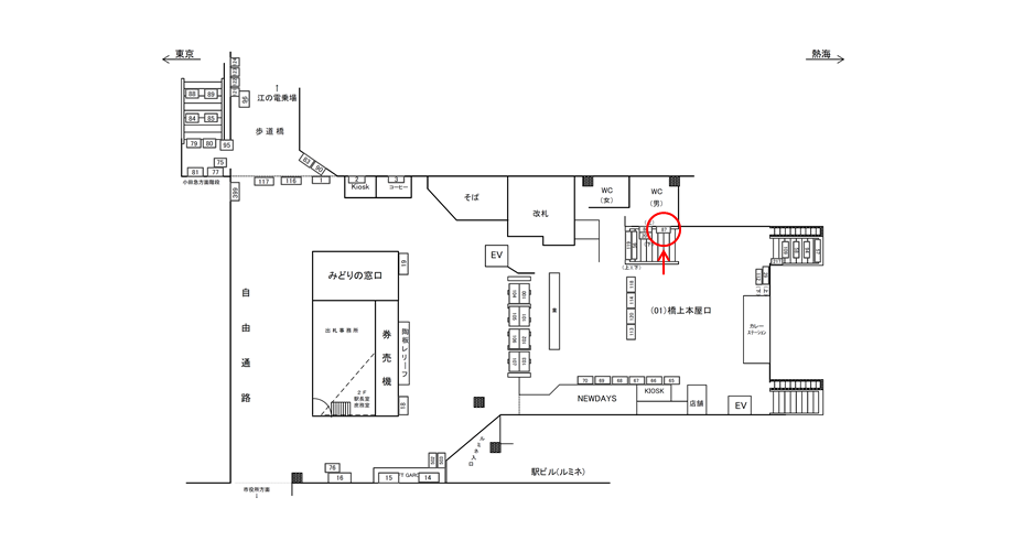 改札とホームをつなぐ動線上にあります。藤沢駅をご利用の多くのお客様へご覧いただけます。