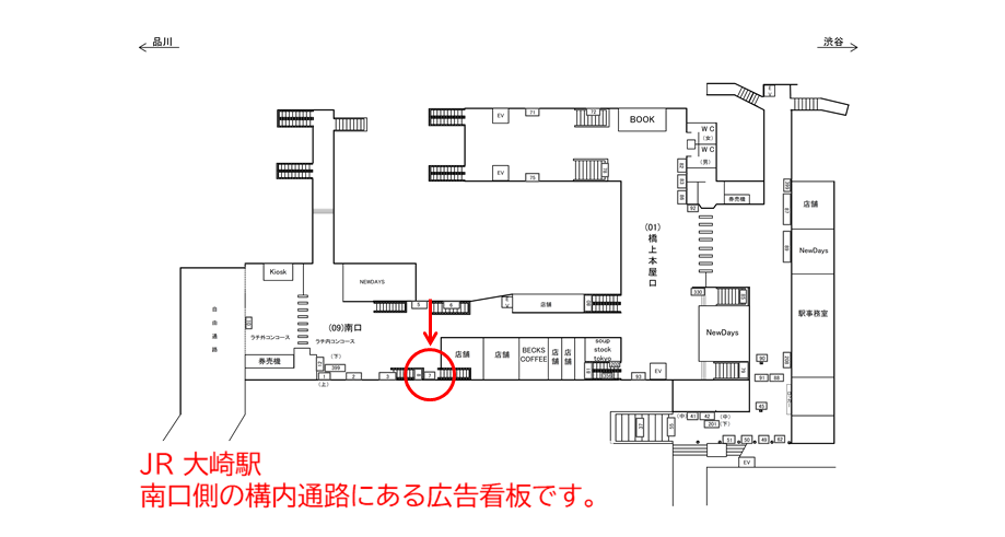 ○橋上本屋口№79 改札内コンコース(北改札口側 JR山手線ホーム 階段正面) |