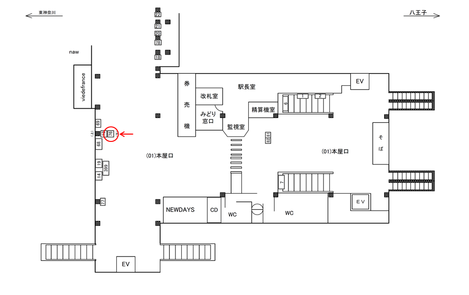 コンコース看板の特徴として、店舗施設に近いロケーションやその移動動線上にある事が多く、店舗誘引や案内看板に適した設置環境が多い事があげられます。相模原駅利用者を対象とした店舗施設案内や、企業周知などにご利用いただけます。