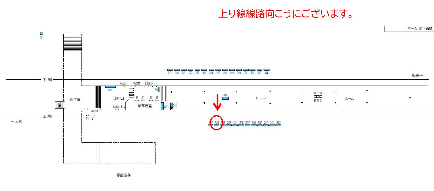 東武川間駅駅の上りホーム(大宮方面)の線路前の看板です。