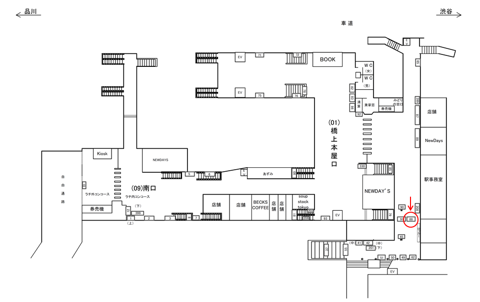 ○橋上本屋口№90 改札外コンコース(本屋改札口出口) |