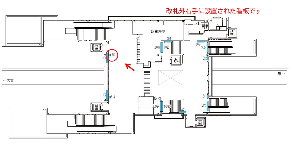 改札を出て東口へ向かう際、自然と視界に入る目線の高さの媒体です。