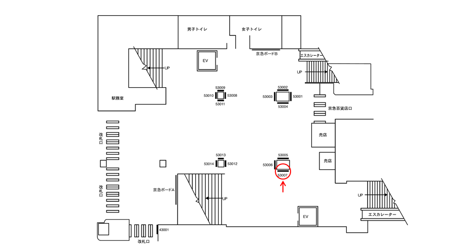 ○№52001 ホーム上(横浜・品川・羽田空港方面ホーム) |