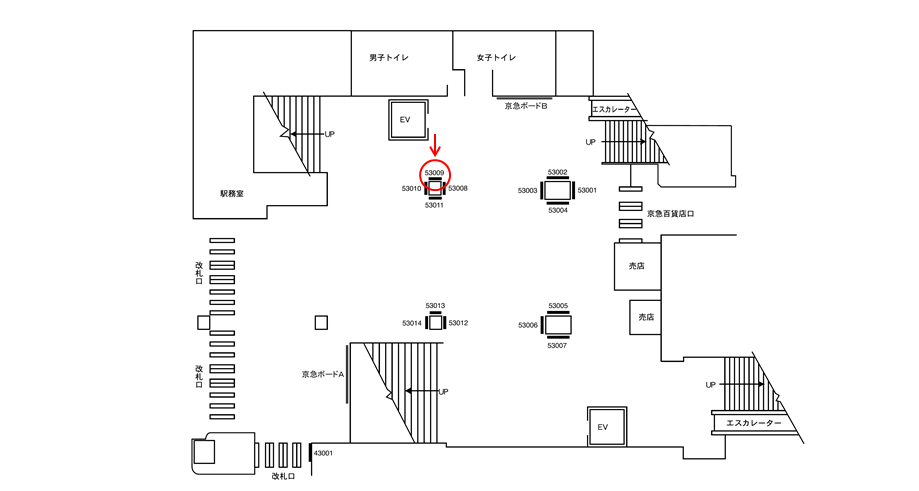 ○№52001 ホーム上(横浜・品川・羽田空港方面ホーム) |