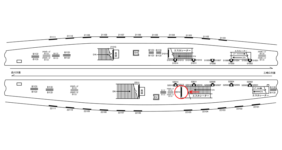 ○№52001 ホーム上(横浜・品川・羽田空港方面ホーム) |