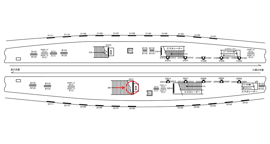 ○№22014 ホーム上(横浜・品川・羽田空港方面ホーム 階段正面) |