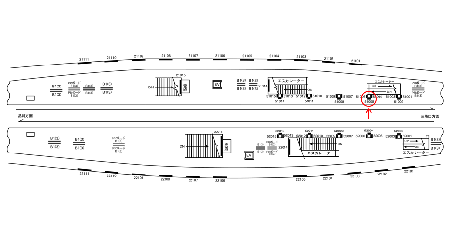 ○№52001 ホーム上(横浜・品川・羽田空港方面ホーム) |