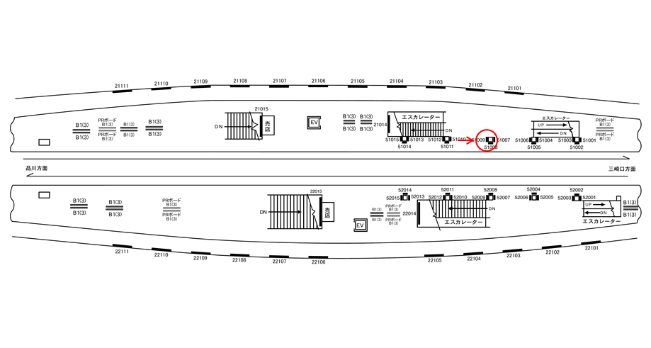○№52001 ホーム上(横浜・品川・羽田空港方面ホーム) |