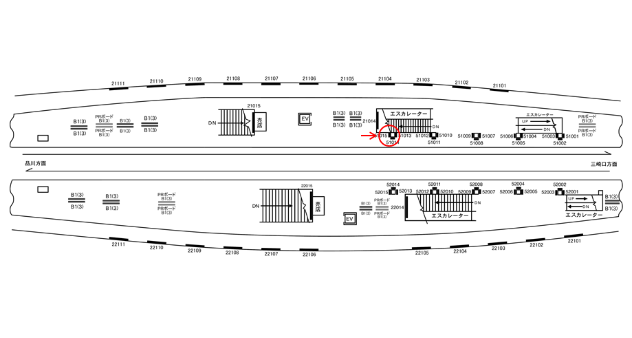 ○№52001 ホーム上(横浜・品川・羽田空港方面ホーム) |