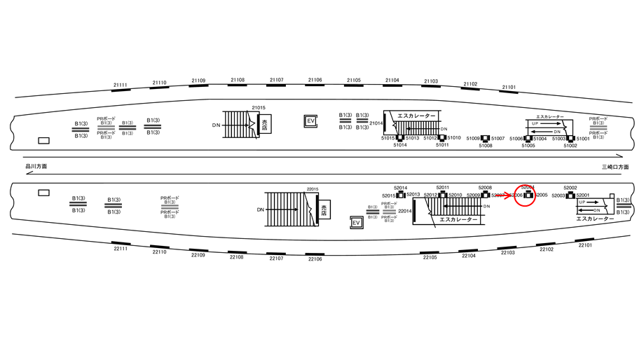 ○№52001 ホーム上(横浜・品川・羽田空港方面ホーム) |