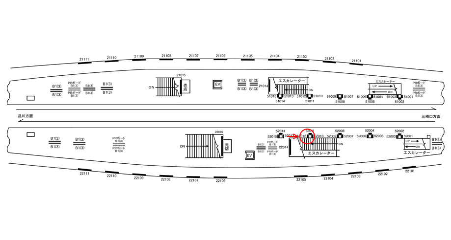 ○№52001 ホーム上(横浜・品川・羽田空港方面ホーム) |