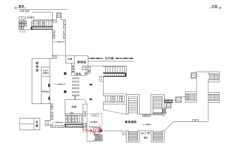 ○本屋橋上№30 改札内コンコース(ホーム階段正面 JR京浜東北線上りホーム) |