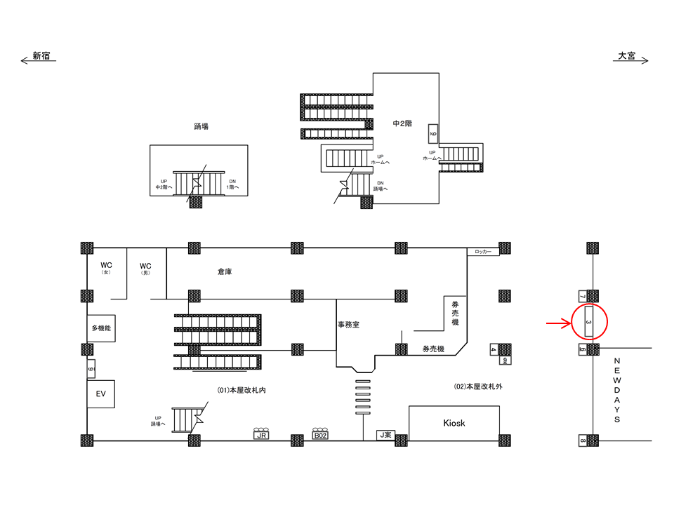 主に改札を抜けた先でご覧頂ける看板です。近隣の店舗や施設への誘導案内看板としてご利用頂けます。北戸田駅の中でもサイズの大きい広告看板です。