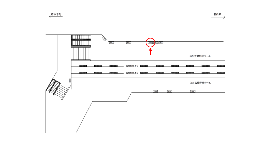 ○武蔵野線ホーム№101 ホーム上(JR武蔵野線 西国分寺・府中本町方面) |