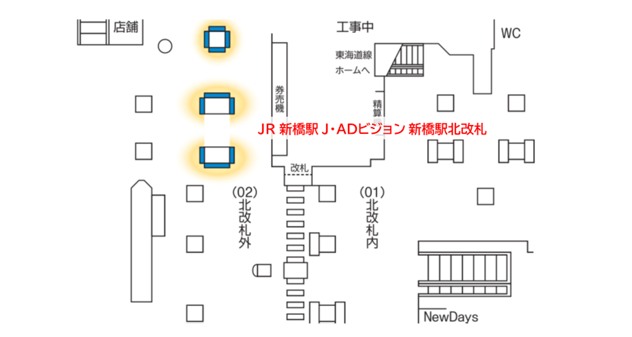○J・ADビジョン 新橋駅北改札 5週間 改札外コンコース(北改札 銀座口側) |