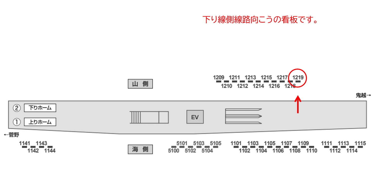 京成本線 八幡駅の下りホーム(京成船橋・津田沼方面)の線路前の看板です。エスカレーター近くの場所にあります、多くの人の目にとまりやすい媒体です。