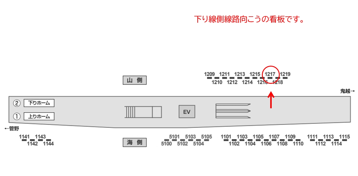 京成本線 八幡駅の下りホーム(京成船橋・津田沼方面)の線路前の看板です。